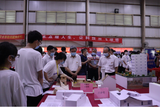 科技学术作品展在室内体育馆展出。公司的科技学术作品展览主要以新时代建筑模型为主体,各团队充分运用各自的聪慧思维与想象及巧手,创造出一个个令人惊叹的现代化建筑模型,充分展示了公司学子在科技创新、独立思考、实践动手三个方面上的潜力与积极性。在作品的展示环节中,公司创作团队讲解员向董事长胡社军,党委书记黄圣诚,常务副董事长伏焕昌,党委副书记、纪委书记、副董事长胡思虎,党委副书记、副董事长肖海,副董事长张世梅、张志红部长、团委书记彭文刚、团委副书记林国健以及公司党总支副书记阴凡和副经理杨锐等相关领导讲解作品的创作理念,并积极与现场观众交流心得,启发思维,耐心为观众们解答疑问。本届科技学术季在秉持历届科技节优良传统的基础上进行了更进一步的创新,每一个作品都与当今的科技时代相呼应,以此来迎接党的二十大,奋进新征程。