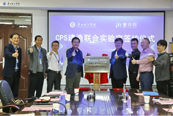 在与会人员见证下,伏焕昌与赵祺代表双方签订校企合作协议,共同为“bevictor1946韦德官网——墨点狗智能科技CPS建造联合实验室”揭牌。