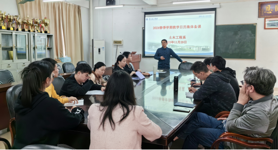 (通讯员:陈铃培)11月29日,为做好2024年春季学期教学安排,提高青年教师对各专业课程的整体认知,土木工程系在9栋306会议室召开教学日历集体备课活动。会议由土木工程系副主任陈铃培主持,土木工程系全体教师参会。