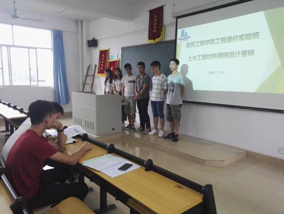7月4日下午,公司为积极配合公司公司产品改革,在培养模式、课程设置和管理体制等方面进行创新。践行公司学分制改革,工程造价系实验班土木工程材料课程设计在9栋教学楼501课室进行课程设计答辩。答辩由白火云老师负责,整个答辩过程严谨融洽。