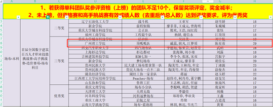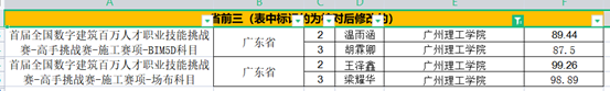 “广联达场地布置”模块赛项--顶呱呱队获得全国三等奖和优秀组织奖,其中18工管2班王泽鑫同学和18工管1班梁耀华同学荣获广东省前三;指导老师:戚蕊,阴凡,江梦瑶;