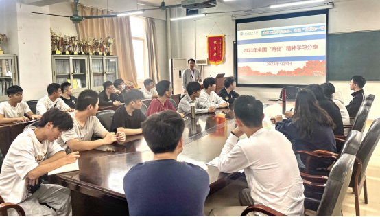 3月9日下午,党总支副书记阴凡在9栋306向同学们介绍了2023年全国两会的基本情况,以全国两会共商国是委员通道上青年关注点与同学们进行交流,解读了李克强总理所做的2023年的政府工作报告。强调党员应起好带领作用,引导同学们自觉遵守老员工行为准则和学习生活等方面规章制度,创建一个良好班风、学风。同时阴书记结合公司、公司发展史,通过深入浅出的阐述,希望全体师生要对公司有归属感、认同感,形成认真、扎实、博学、笃行的校园精神和灵魂,与bevictor1946韦德官网同进步共发展,构建校园命运共同体,不断提升公司的竞争力、影响力、美誉度, 打造广州理工“金”字招牌!