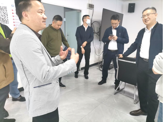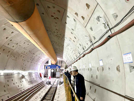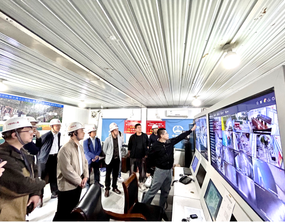 随后,一行人到项目车站盾构始发井,在视频指挥室通过监控画面,结合项目经理的讲解,全面了解整个施工项目的全流程实时情况。在施工现场,参观了该始发基地的文明施工标准化、隧道内管线布置标准化等相关内容,并详细了解了渣土处理的施工工艺、占地面积、环保设施及渣土处理能力。
