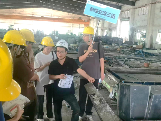 在“通达科技公司”的柳厂长、魏总工、刘经理的带领下,21造价5班(Z)的同学分为三个小组开展了预制装配式工厂的参观与学习。学习内容包括(1)初步介绍工业区的一些基本情况,包括工地的规模、建筑设计、使用功能等;(2)参观工业区现场,了解工地的布局和各个部分的功能;(3)观察并了解建筑施工中的一些基本工艺和技术,如混凝土浇筑、钢筋加工、预制构件,如飘窗、隔墙,叠合板等;(4)员工们与工作人员交流,了解预构件的工作内容和技能要求;(5)员工按照小组进行互动讨论,记录并展示各自观察到的问题和发现。