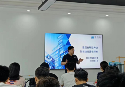 15日上午师生们来到墨点狗公司参观学习。首先,赵祺总经理以《建筑业转型升级探索》为题,从行业背景、工业化生产、智能化管理、案例分享四个方面展示了建筑业转型升级的必要性与迫切性。接着王成刚经理就建筑工业化专项进行分享,包括装配式行业发展及国内外技术、广东省装配式评价标准分析解读、广东省装配式评价实例项目分享等方面。