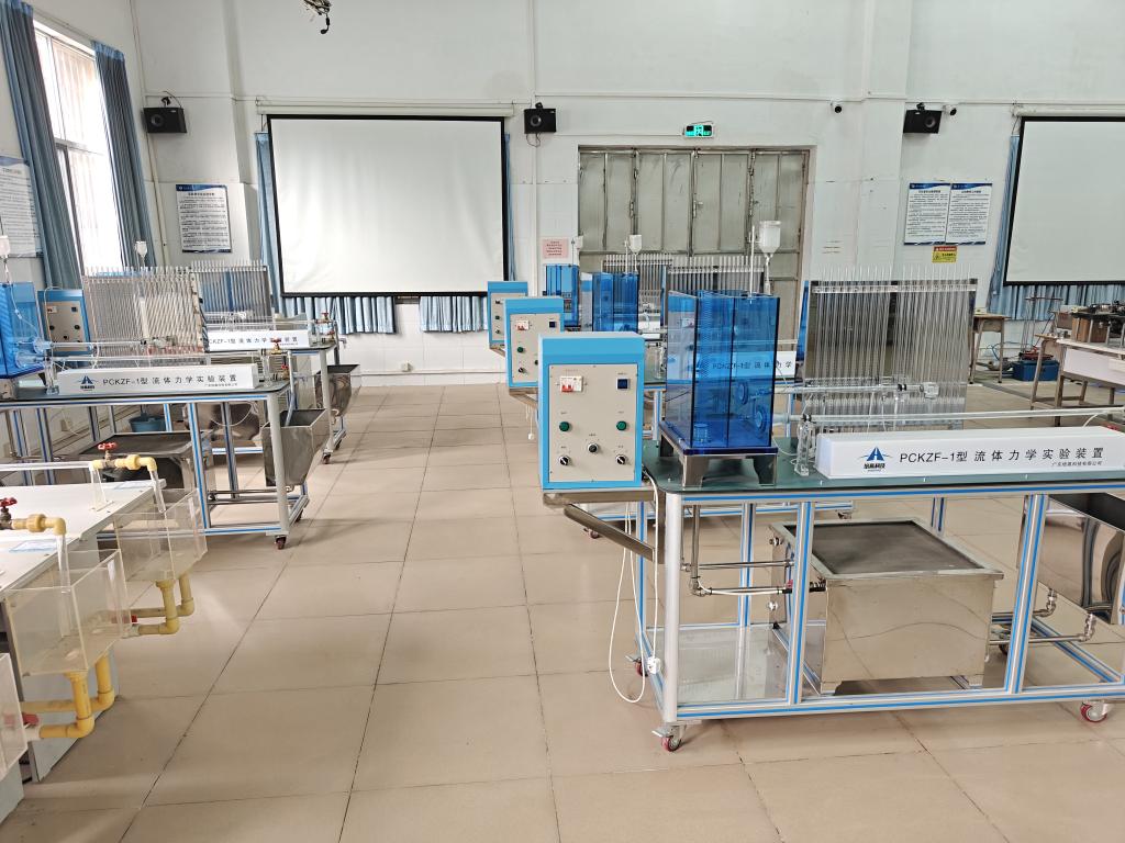 流体力学实验室始建于2011年,建筑面积108平方米,主要仪器设备有:流体流线演示实验装置、雷诺演示实验装置、机械能转化演示实验装置、流体力学综合实验装置、气体湍流射流实验台、自循环明渠水力学多功能试验仪、离心泵特性曲线测定实验装置,能够满足流体力学相关课程的实验需求。