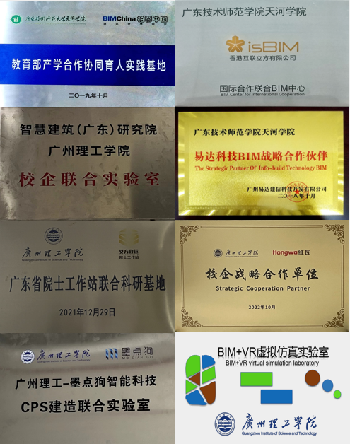 校企合作亮点:依托大湾区智能建造与BIM应用联合中心、广东省院士工作站联合科研基地、墨点狗智能科技CPS建造联合实验室、智慧建造(广东)研究院联合实验室、教育部协同育人基地等重点科研平台,公司科研团队承担国家重点研发项目、省级工程中心项目、广东省住房和城乡建设厅科技项目、中铁十九局集团有限公司重大科技项目、广东省六建集团有限公司科技项目等多项科研项目,并取得较好的经济效益,可满足行业内智能建造的研究、工作室社会服务和实践教学工作。其中科研团队参与完成的一项科技成果被评定为达到国际先进水平。科研团队获得了广东省土木建筑领域科学技术一等奖、广东省科技进步二等奖等多项行业大奖。