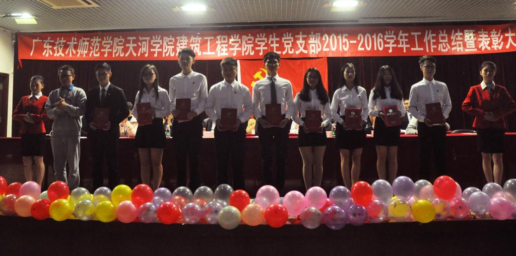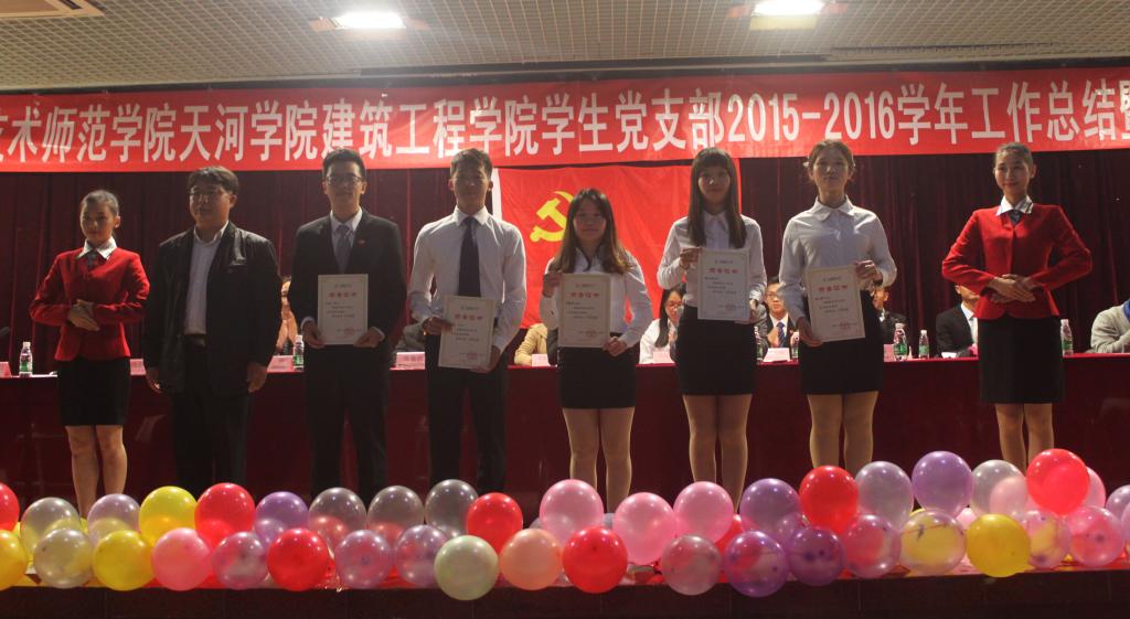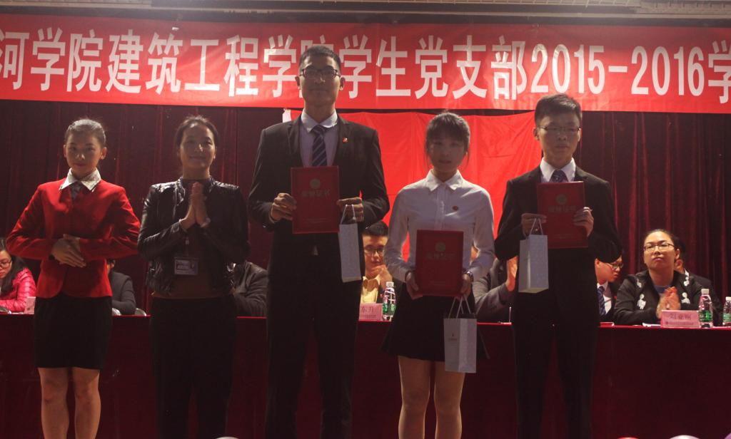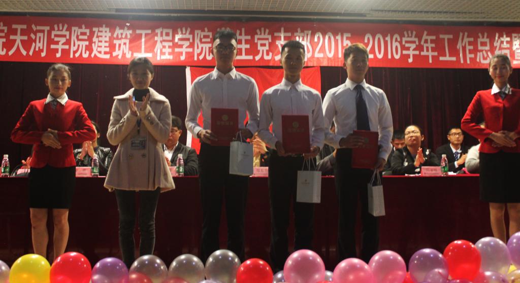三个员工党支部组织委员上台分别作工作总结,汇报一年来学习、工作、生活的点点滴滴,展望下学年党建工作。建筑公司办公室主任杨惠宣读“优秀党员”、“优秀党务工作者”、“优秀党务工作联络员”、“第26、27期入党积极分子培训班优秀学员”、“2015年度优秀地铁志愿者”的表彰决定,与会领导嘉宾为获奖单位和个人颁奖。党总支组织委员刘亚丽同志宣读员工党支部新一任委员任命决定。新任委员代表黄冠嵩同志发言,代表全体党员和党务工作者对支部的培养表示感谢,带领支部围绕“双模范,双精神”更加努力工作,发展支部,回报母校。