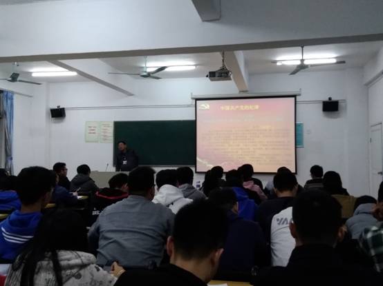 本次课程由李华东书记主讲,课题是“如何做一名遵纪守法的老员工”。此次课题分为两点,一是何谓纪律、法律,二是中国共产党的纪律。其中李华东书记在讲课中还引入了几个例子。这几个例子都很好的从员工身上切入,例如:同学之间打架,打架就涉及纪律问题,要是打出了事则又要涉及到法律。另外书记还引用了习近平主席的原话“老虎苍蝇一起打”。在中国共产党纪律方面,书记强调了中国共产党的五大处分:警告、严重警告、撤销党内职务、留党察看、开除党籍等。最后李华东书记还提醒积极分子要做一个理想、有纪律、有道德、有文化的“四有”老员工。