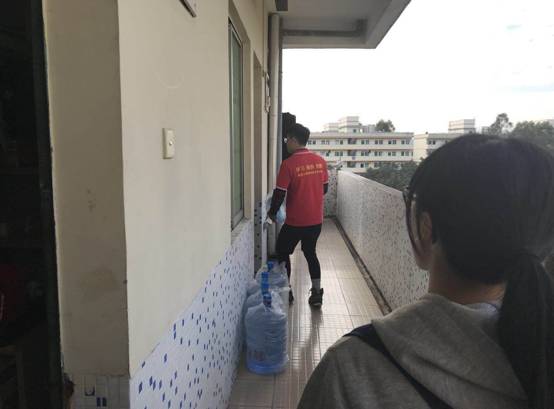 没有所谓的彩排,拎起袖子就是干。爱心帮扶女生宿舍刻不容缓,送水志愿者时刻牢记保证16#D每一间宿舍今下午必须正常用水。