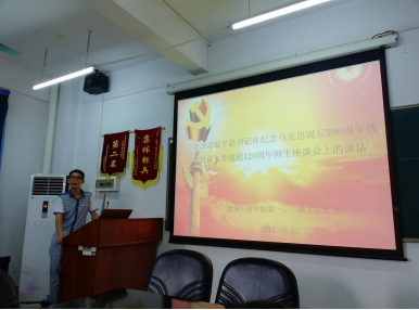 张威威同志首先介绍了2018年5月4日在人民大会堂举行的纪念马克思诞辰200周年重要会议、习近平总书记发表重要讲话的重要背景后,到会党员共同学习重要讲话文稿和观看新闻联播录像。