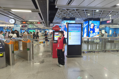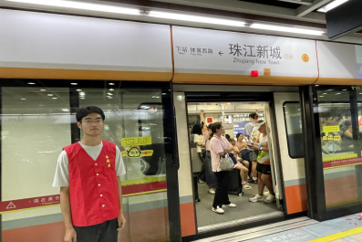 志愿者引导乘客出入闸机