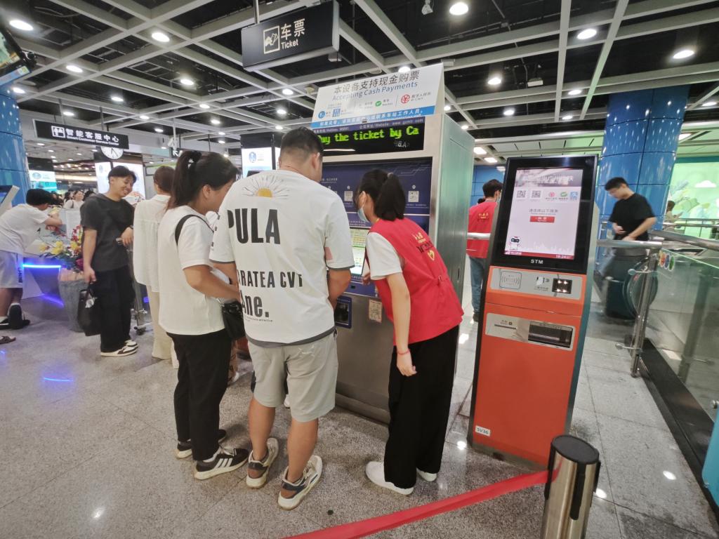 活动开始前,地铁工作人员针对现场实际情况对志愿者们进行了岗位培训,确保他们了解并熟悉服务期间的工作职责。活动期间,在工作人员的指引下,志愿者们迅速抵达各自的岗位,积极协助乘客快速购票、指导使用乘车码进出站、引导客流和规划换乘,有效缓解了地铁站的运营压力。随着客流量的持续增加,志愿者们身着统一的马甲,面带微笑,以贴心的服务迎接着每一位乘客。志愿者们以高度的责任感和使命感,为广大乘客提供了优质的出行体验。