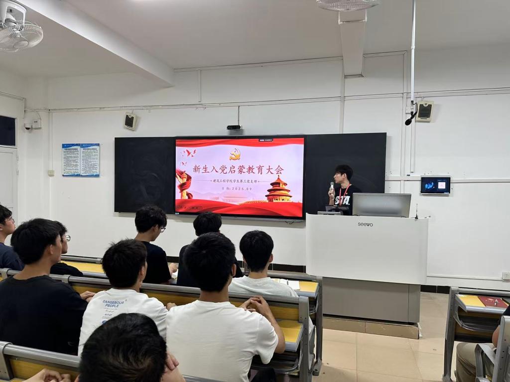 会上,罗浩铭同志围绕“什么是党”“为什么入党”“怎么入党”展开讲解。他明确中国共产党的先锋队性质、领导核心地位与根本宗旨,强调入党需基于对党的理想信念认同,而非个人利益,鼓励新生将个人理想融入党和国家事业发展大局;同时梳理入党全流程,明确各环节要求,提醒新生加强理论学习、参与党组织活动。