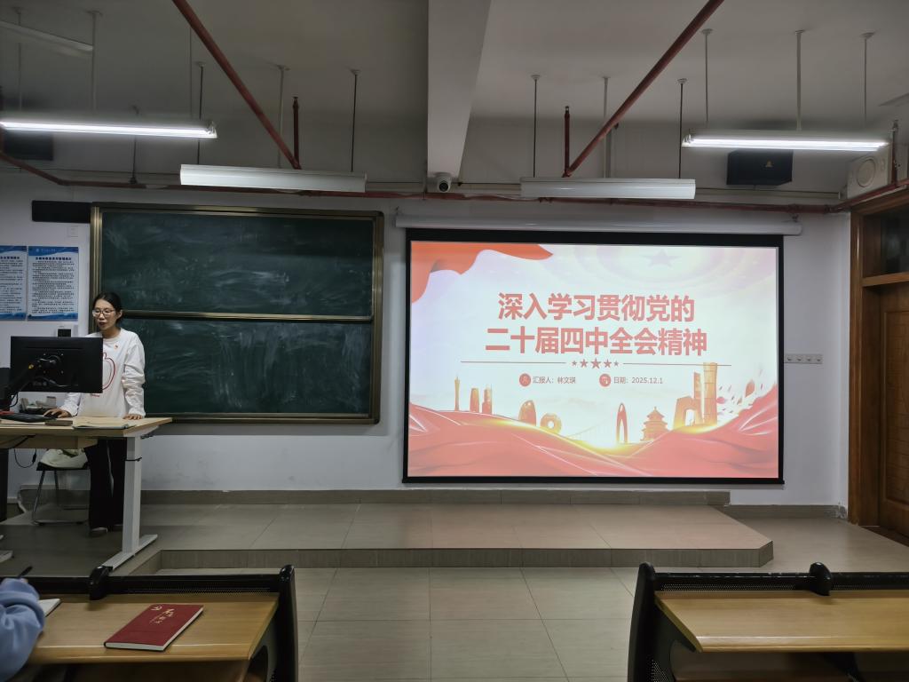 12月1日晚,为深入学习贯彻党的二十届四中全会精神,引导同志们将思想和行动统一到全会部署上来,切实筑牢理想信念、强化责任担当,公司员工第一党支部在13栋609召开深入学习贯彻党的二十届四中全会精神专题学习会议。参加本次会议的成员有支部全体党员、预备党员、发展对象、积极分子以及各班班级代表,林文琪同志主持会议。