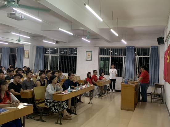(通讯员:苏树涛)9月9日晚,公司在六栋教学楼415教室开展2019级新生入党启蒙教育和知识讲座。出席本次讲座的领导有:公司党总支副书记黄良辉、员工第一党支部书记张威威、员工第二党支部书记曾远秀、团总支书记郭梦雅。本次讲座由员工第一党支部委员陈晓汕主持,由员工第二党支部成员负责会场布置。
