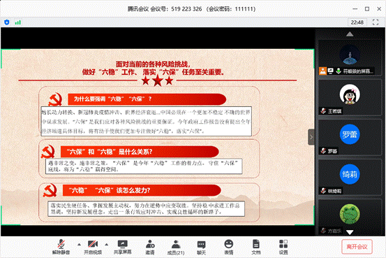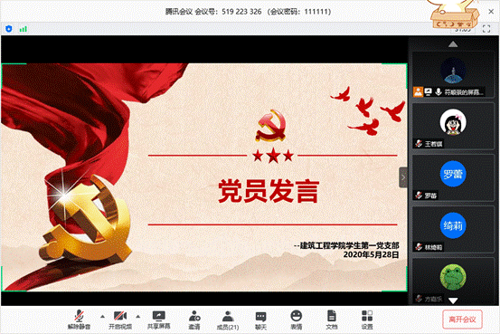 (通讯员:林润菁)5月28日下午,为深入学习两会精神,树立党员优良作风,公司员工第一党支部在线上,召开了学习“两会”精神的会议。参会人员为员工支部党员、预备党员。本次会议分为三项议程:学习两会民生热点内容、观看新闻视频、党员发言。