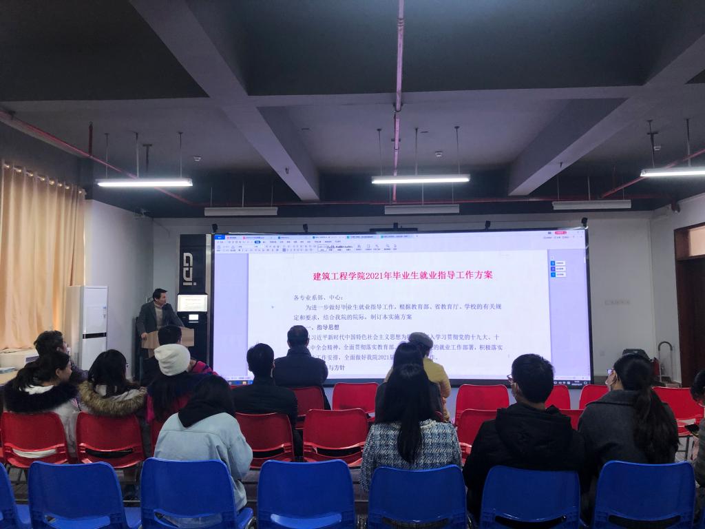 黄良辉副经理传达了教育部、省教育厅关于就业创业工作相关会议精神及公司关于2021届毕业生就业指导工作启动方案,结合公司的实际,研究制定了公司就业工作实施方案,强调了全员抓就业、全面抓就业、全程抓就业的工作方针,提出了一系列工作措施,以实现提高毕业生的就业率、就业质量和就业满意度。通过列举2020届、2021届毕业生就业大量详实的数据,以及公司最近所开展的多场招聘活动、宣讲会等深入分析了公司目前就业工作取得的成绩与面临的挑战,为公司今后就业指导工作的推进提出要求,各系、各岗位老师需要进一步的把就业工作落实到实处。