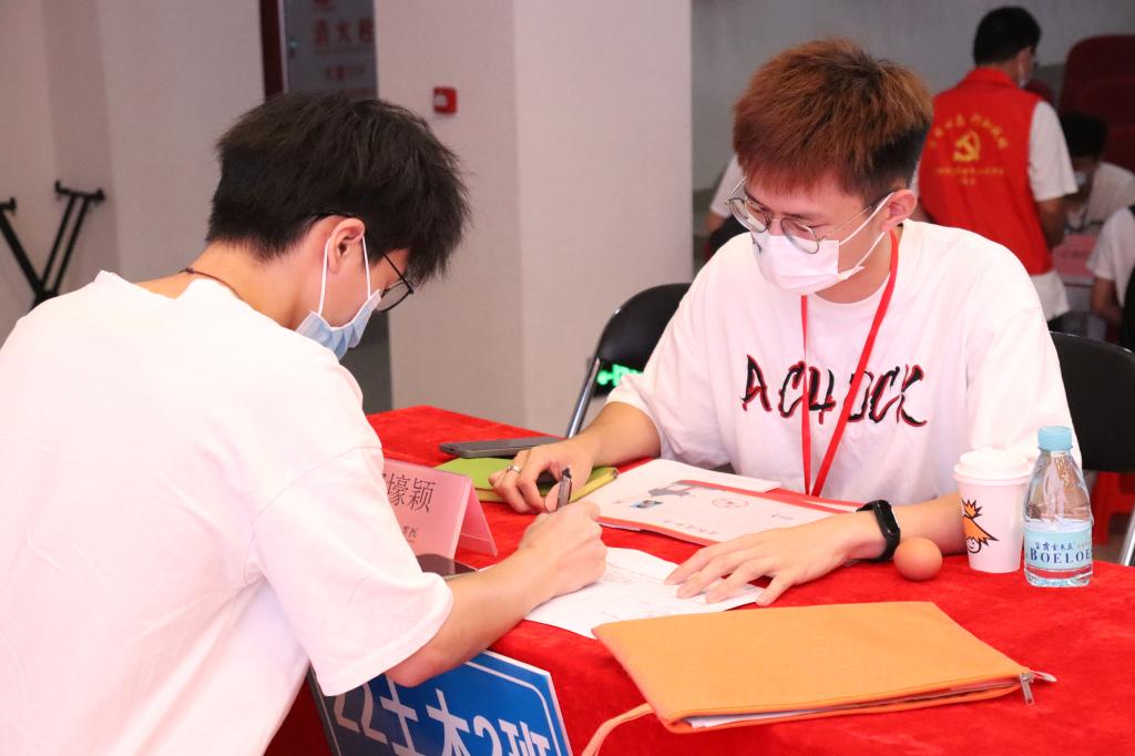伴着凉爽的秋风,新生怀着求知的热情和对未来的憧憬踏入新的学习之门,志愿者也以最精神饱满的姿态接待每一位新生,井然有序地引导新生进行报到。新生积极配合着志愿者的工作,顺利完成报到。整个报到过程有序、高效,校园四处洋溢着青春的气息。