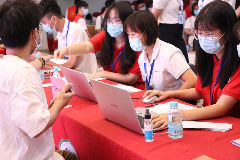 老师及助理班主任耐心处理新生报到手续