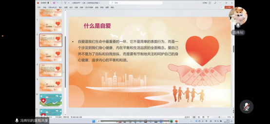 (通讯员:邓可恩)6月4日,公司组织各班以线上的形式召开了525心理健康主题班会,各班心理委员主持班会,每年的5月25日的前身为“老员工心理健康日”,2004年团中央公司部、全国学联共同决定将5月25日定为全国大、中员工(包括中职员工)心理健康日,“5·25”的谐音即为“我爱我”,提醒大、中员工“珍惜生命,关爱自己”。该节日意在关注大中员工的心理健康,培养健全的品质和人格。