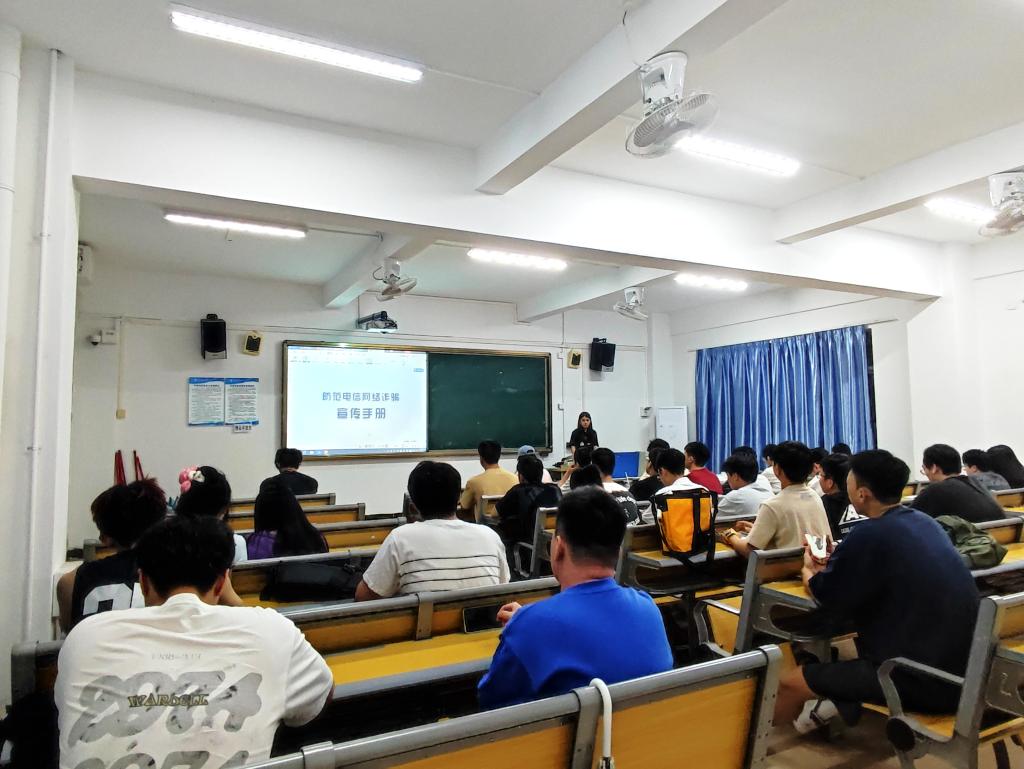 此次防范电信网络诈骗主题班会主要以“你我同心,反诈同行”为主题,向同学们详细讲解了由国家反诈中心制作的《防范电信网络诈骗宣传手册》,手册中介绍了十种常见的电信网络诈骗类型,主要包括网络贷款诈骗、刷单返利诈骗、“杀猪盘”诈骗、冒充电商物流客服诈骗、冒充熟人或领导诈骗、冒充“公检法”诈骗、虚假投资理财诈骗、虚假购物诈骗、注销“校园贷”诈骗和网络游戏虚假交易诈骗,通过分析易受骗群体、作案手法以及身边典型的诈骗案例和防骗提示,让更多员工了解当前的诈骗手段,提高防范鉴别能力。