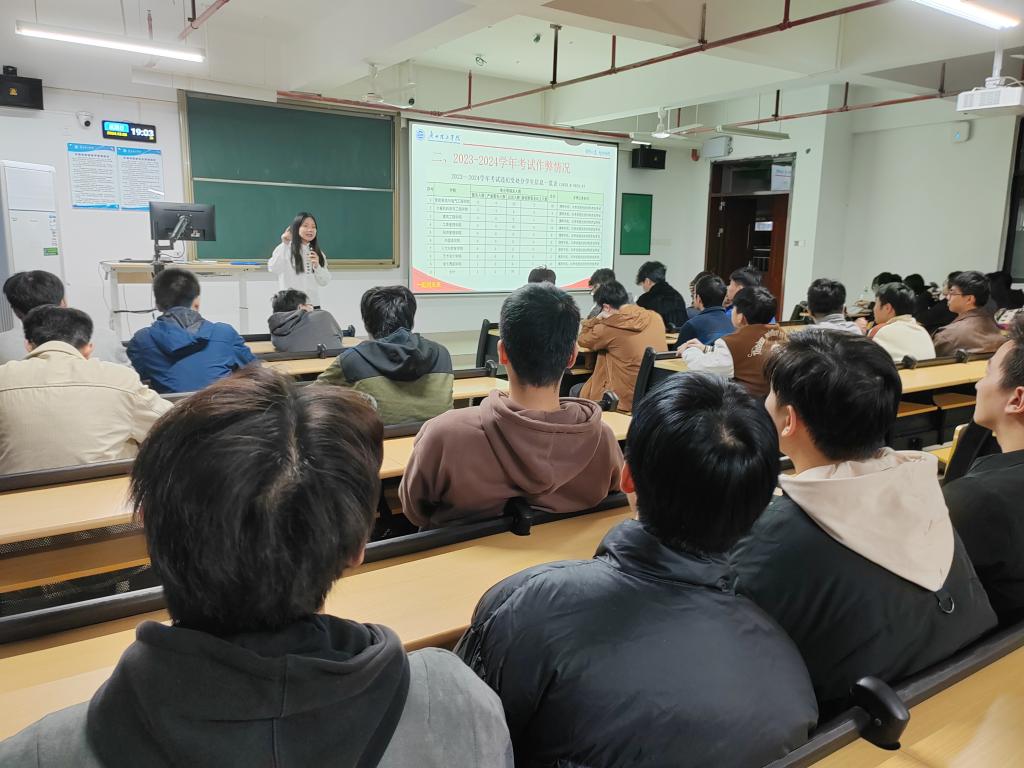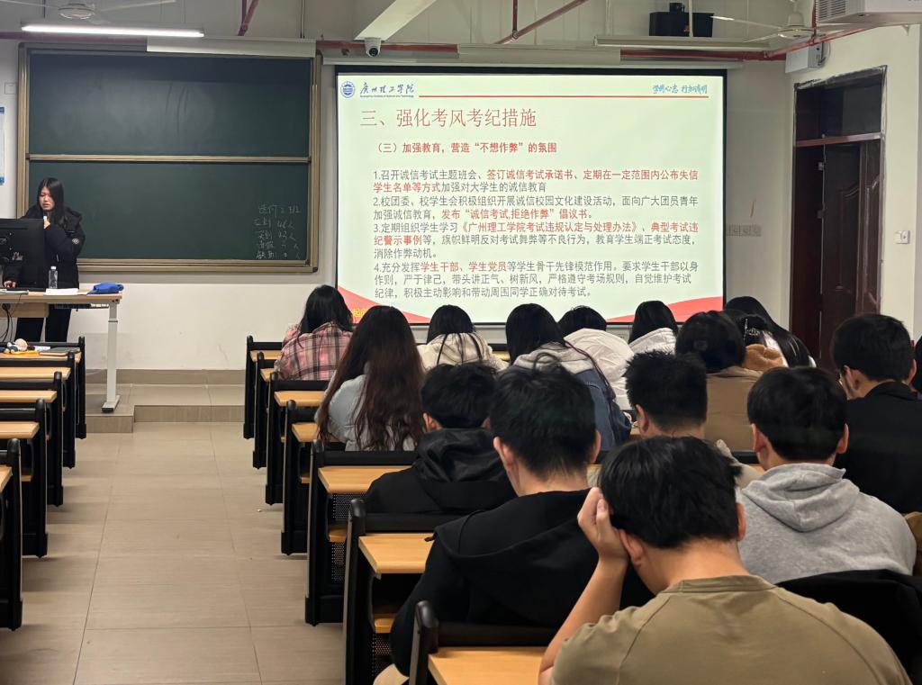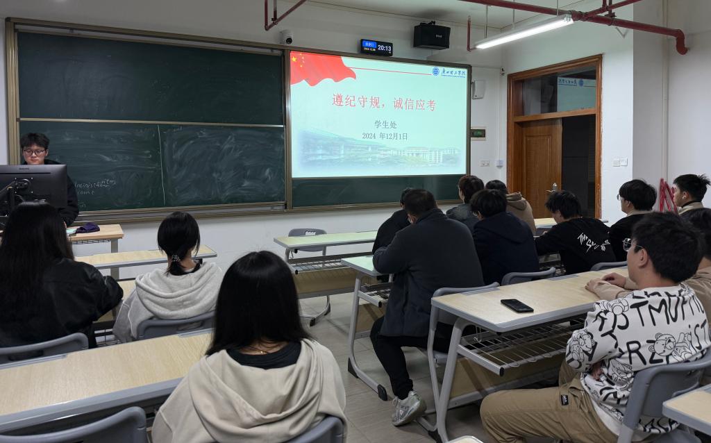 班会上,各班班长着重强调了考试纪律,明确禁止携带手机等电子通讯工具进入考场,要求员工严格遵守考场规则,坚决杜绝作弊、抄袭等行为,以诚信态度对待每一场考试。此外,各班辅导员在会上指出,“没有好的考风,难求好的学风”。诚信考试不仅是个人品德修养的重要体现,更是对知识的尊重与敬畏,并且鼓励同学们从自身做起,凭借自身真实实力应考,共同营造公平公正、积极健康的考试环境。