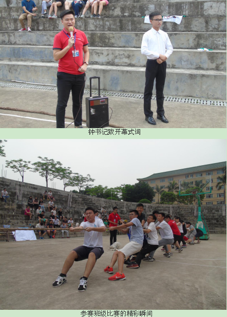 本次开幕式非常荣幸邀请到壹滋食品有限公司总经理何志军先生、公司党总支书记李华东、团总支书记钟任鹏、辅导员何兆传、范晓果出席观看比赛。开幕式现场热闹非凡,聚集了各班的队员、拉拉队以及场外观众。开幕式伊始,由钟书记为开幕式致词,他强调此次拔河比赛是增强体质和班级凝聚力的重要项目,希望同学们本着“友谊第一,比赛第二”的心态进行比赛,最后他宣布第三届“大力神杯”拔河比赛正式开幕。