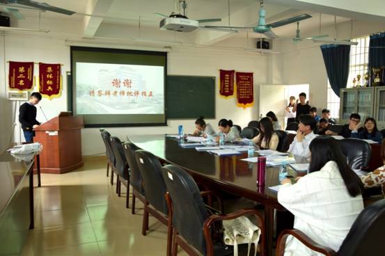 会议中,由联合毕业设计的A、B两个团队分别从项目成本控制方案设计、全过程造价管理方案设计、可行性研究报告编制、设计概算编制与分析、招标控制价编制与分析、投标文件编制与分析、施工组织设计、施工成本控制方案设计以及合同分析与设计共九个方向进行了详细介绍与分析演讲。