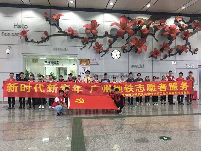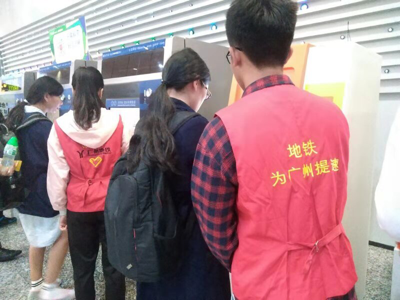 服务队同学们在广州地铁工作人员指引下,热情地为有需要的公民提供力所能及的帮助,为乘客排忧解难,让每位乘客都能顺利地搭乘地铁顺利地到达自己的目的地。