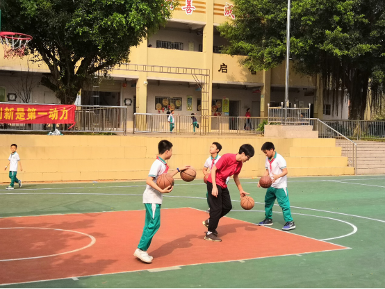 在和小员工们一起打篮球