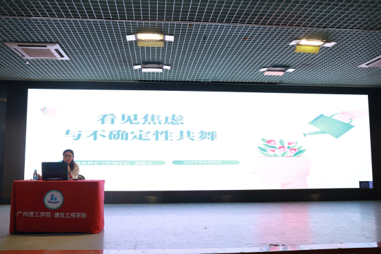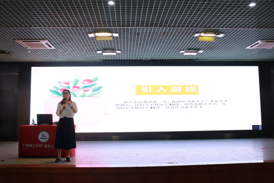 讲座伊始,黄秋芬老师引导同学们以做游戏的方式,让同学们自我评估压力值,引导同学们积极地参与到讲座中,通过此次评估为同学们详细地介绍了焦虑的含义、焦虑症的临场表现以及焦虑情绪与焦虑症的区别;从学业压力、人际关系和就业压力三个方面分析引发老员工焦虑的原因,通过案例展示将晦涩难懂的名词变得浅显易懂,直截了当的向同学们传达了焦虑心理最终带来的悲剧,同时也警醒同学们摆正心态。