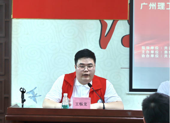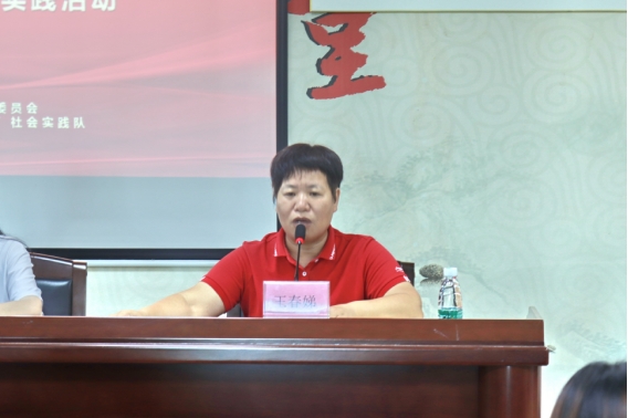 实践队负责人王畅龙发言,他对各位领导和老师对于实践队的支持和鼓励表示感谢,并对本次队伍的行动做了全面的介绍,他表示队伍将结合当地特色,根据实践队队员自身的专业知识,不断优化实践内容,为观背村发展带来实质性的帮助。