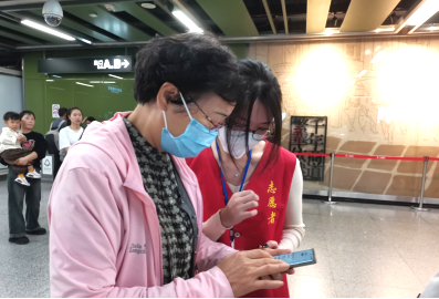 志愿者为乘客提供帮助