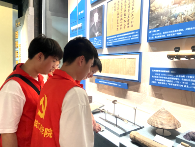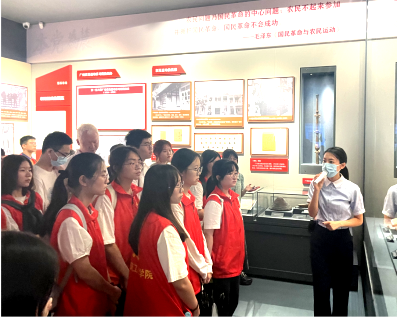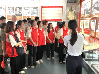 历史因铭记而永恒,精神因传承而不灭。全体同志跟随讲解员的脚步,步入坐落于园中的广东革命历史博物馆,这座千年羊城的历史随即浮现眼前。在这里,同志们通过近距离地感受历史的温度,进一步加深了对中国近代史的认识和了解。从历史的“百年巨变”到广州党组织的“逢春蛰起”,从风起云涌的大革命运动到百折不挠的白区斗争,从勠力同心的抗日战争到爱国民主运动,无不体现出中国共产党苦难而辉煌历史的生动缩影。同志们随着讲解员的脚步参观各个展馆,认真聆听、不时驻足沉思,不时低声交流,在观摩过程中接受着革命精神的洗礼。“张云峰烈士的绝笔书”“红布带”“四一式山炮”一件件红色文物用沉静的姿态向同志们诉说了共产党人不怕牺牲、英勇斗争的风骨和品质,展现了中国共产党百年奋斗的光辉历程。