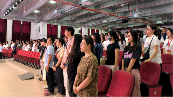 会议开始,全体起立,奏唱中华人民共和国国歌。在慷慨激昂的《国歌》声中本次开班典礼拉开帷幕。