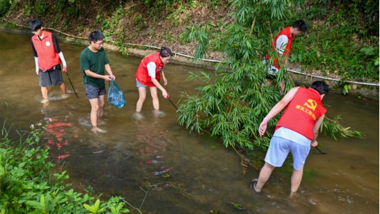 下午的阳光肆意地洒在莲湖村的河道上,气温节节攀升。队员们手持垃圾钳和垃圾袋,沿着河道一步步前行。他们弯腰拾起岸边的垃圾,小心翼翼地打捞着河面的漂浮物。每一次的弯腰,每一次的伸手,都是对环境的呵护,都是对乡村振兴的有力支持。在这个过程中,队员们不仅用双手改善了河道的环境,更在内心深处增强了对水资源、水生态的保护意识。用实际行动诠释保护环境不仅仅是一句口号,更是实实在在的行动。