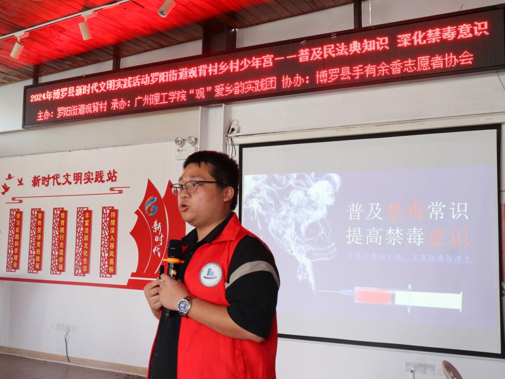 (通讯员:房德钦)为深入学习贯彻党的二十大精神,进一步普及民法典知识并深化禁毒意识,7月16日下午,bevictor1946韦德官网“观”爱乡韵实践团在观背村书吧二楼举办了一场主题为“普及民法典知识,深化禁毒意识”的活动,为乡村公共服务贡献青年智慧与力量。此次活动不仅加深了村民对法律知识的理解,也进一步强化了乡村的禁毒教育,为构建和谐、法治的乡村环境添砖加瓦。