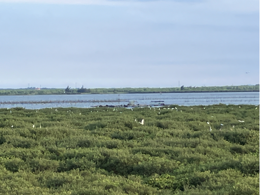 乾塘村,这个镶嵌于碧波万顷之中的美丽村落,成为了“坡笑”实践团此行的关键一站。我们深知,红树林作为热带、亚热带海岸潮间带的独特生态瑰宝,不仅是自然界的奇迹展现,更是维护海洋生态平衡、抵御自然灾害不可或缺的重要力量,被誉为“海洋绿肺”与“海岸卫士”。它们以独特的胎生繁殖方式,展现了惊人的生命力和环境适应能力,有效减轻了海浪对海岸线的侵蚀,为沿海居民和农田筑起了一道安全防线,同时也为众多海洋生物提供了宝贵的栖息地和繁衍空间,是鱼、虾、贝类及多种鸟类赖以生存的家园。