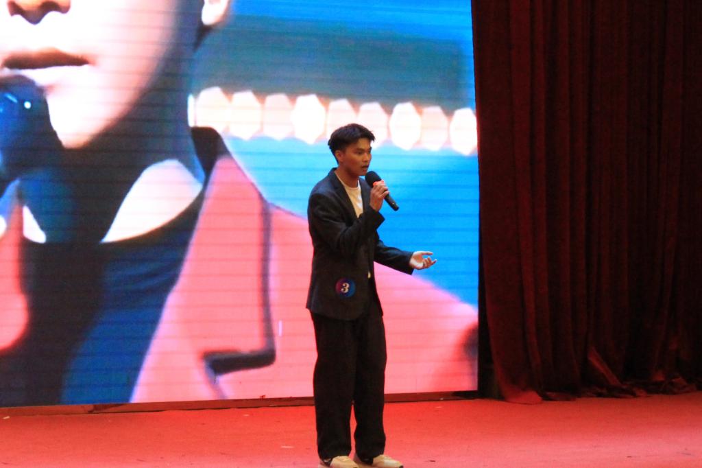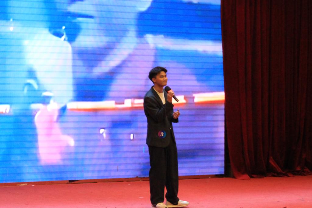 比赛当晚,报告厅座无虚席,热情洋溢的气氛充满了整个会场。伴随着绚丽的灯光与欢快的节拍,报告厅瞬间变成了音乐的海洋。公司李政同学怀揣着对音乐的无限热爱,带着属于自己的风格与故事,将自己的情感融入到歌曲中,用歌声展现个性,用热情点燃现场,展现了青春的活力和音乐的魅力。他用独特的嗓音演绎《沉默是金》、《上海滩》,歌声悠扬婉转,情感真挚深沉,打动了现场的评委和观众,并且在本次决赛中荣获亚军。