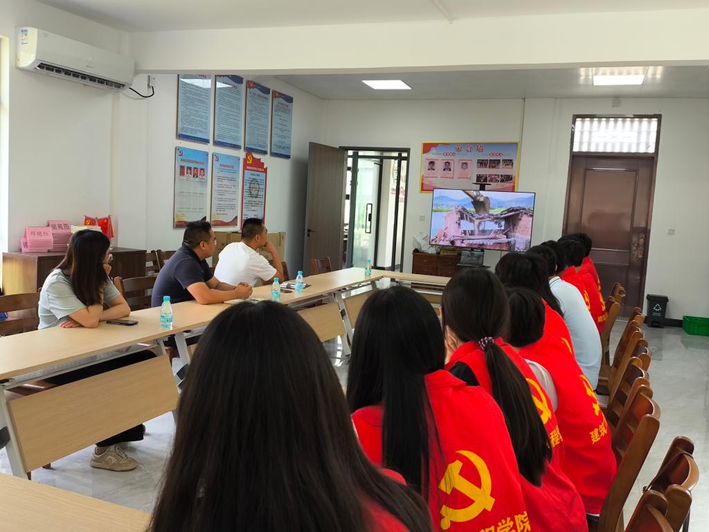 实践团成员集体观看文典村视频介绍