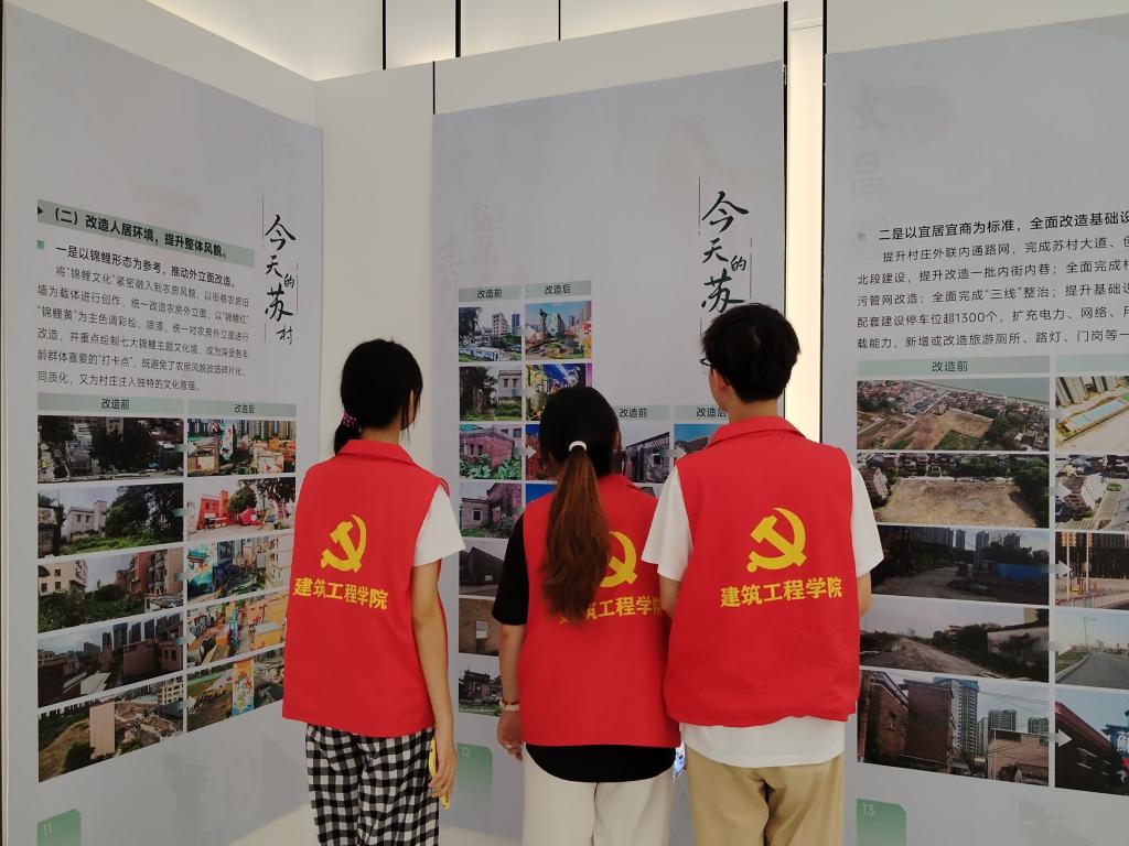 实践团成员观看苏村历史