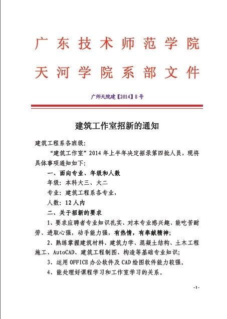 2014年上半年建筑工作室招新通知