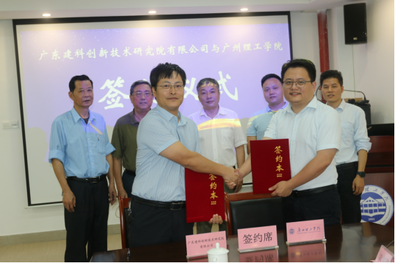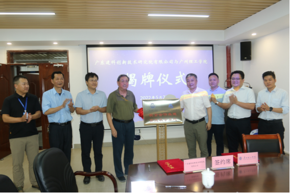 在与会人员共同见证下,伏焕昌常务副董事长与广东建科创新技术研究院有限公司副总经理吴瑜灵代表双方签署校企合作协议,胡社军董事长与李健总经理共同为“校企合作共建实践教学基地”揭牌。