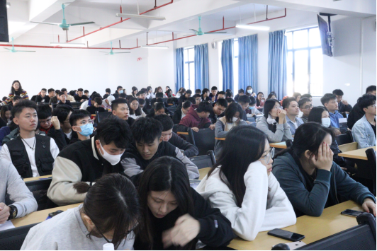 田斌经理介绍首先企业文化活动,内容主要包括关于我们简介、公司发展历程、主要产品介绍以及公司历年所获得成就等情况;随后阐述公司的培养与发展模式,如公司出席的活动、为社会所做的贡献、人才培养方向以及公司所提供相应的提升机会和职业发展通道等,图文并茂及生动活泼的宣讲方式深深地引起同学们对未来就业的向往。