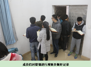本次课程主要包括三个方面,一是房屋安全完损等级四个标准,二是检测过程中需要检查的项目,此次着重点是裂缝的检测与记录。三是写报告中常见的专业词语等问题。何工通过带领大家到9栋1楼进行观察,并根据需要的信息要求我们独立完成报告。成员们均表示出积极性,陆续在1楼找到、测到自己需要的房屋信息。通过这节课的学习,让大家更为深入的了解检测的有关知识,最后意犹未尽的结束了这堂课的内容。
