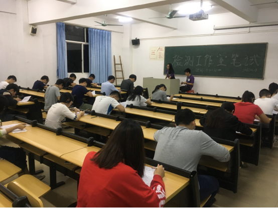 10月18日晚,在9栋501、502课室进行检测工作室招新工作的笔试部分。此次笔试有五十多名同学参加。其中将有24名员工进入二轮面试。