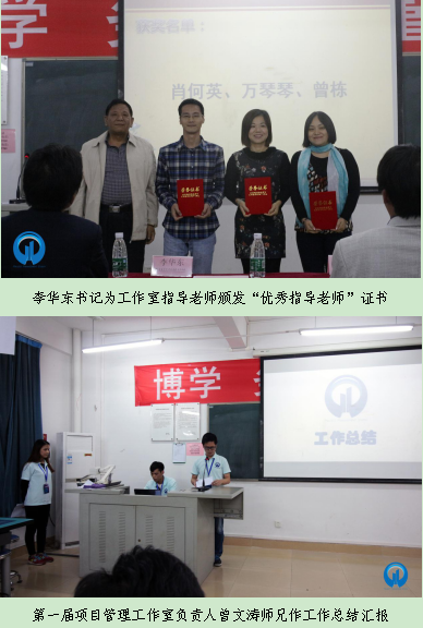换届仪式分两步进行:首先,由第一届项目管理工作室员工负责人曾文涛向参加大会的领导和老师作工作总结汇报,生动详实地汇报了第一届项目管理工作室运作成果和任务完成情况。从工作室成立至今,员工负责人在万琴琴老师的带领下,秉持“博学,务实,严谨,团结”的宗旨,实事求是地完成各项工作,培训计划有序进行。同时也认真总结过去存在的不足并强调工作室全体成员要紧密团结,希望在新一届员工负责人的带领下,众志成城、上下一心,积极进取、继往开来,汲取往届的经验,踏实推动工作室又好又快地发展。