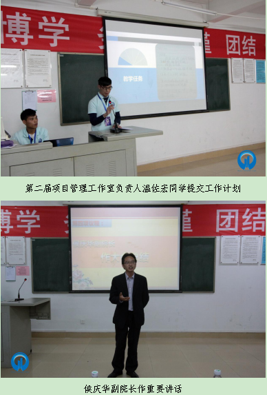 接着,第二届项目管理工作室员工负责人温佐宏提交工作计划及展望。温佐宏同学按工作室负责人万琴琴老师下发的学习任务开展下一阶段的工作计划。其任务主要分为三大部分、六个阶段进行,并强调将认真落实公司推进工作室教学精神,把工作室打造成一个更全面的学习交流平台,同时也希望工作室全体成员共同努力,将工作室带上一个新的高度。