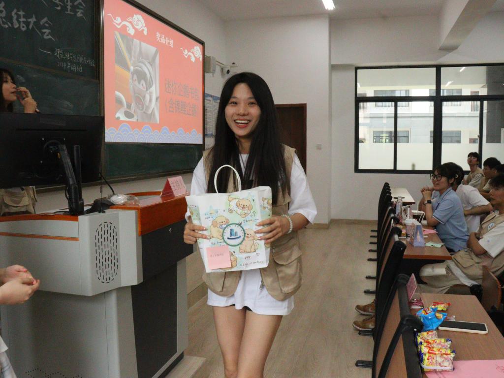 随后,员工会主席团代表余千欣上台发言,详细汇报了各部门在过去一学年的工作情况和取得的成果,包括组织策划的各类活动、参与的志愿服务、开展的员工工作等。同时,她也坦诚地指出了工作中存在的问题和不足,并提出了具体的改进措施和未来的工作计划。在听取了汇报后,各部门代表纷纷发言,就如何更好地发挥团总支•员工会的职能作用、加强各部门之间的合作与交流、提高工作效率和质量等方面进行了深入的讨论和交流。大家纷纷表示,要以此次总结大会为契机,认真总结经验教训,不断创新工作思路和方法,以更加饱满的热情和更加务实的作风投入到今后的工作中去。随后进入抽奖环节,通过电脑随机抽取幸运观众,分发精美礼品,过程轻松愉快。